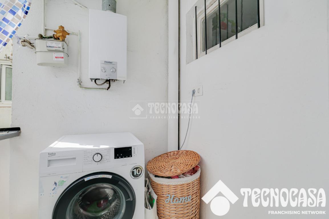 El piso cuenta con tres habitaciones, dos de ellas exteriores con armarios empotrados, lo que proporciona un amplio espacio de almacenamiento. El baño completo de cuatro piezas incluye una bañera ideal para relajarse después de un largo día. Además, la galería ofrece una zona práctica para el lavado o almacenamiento.